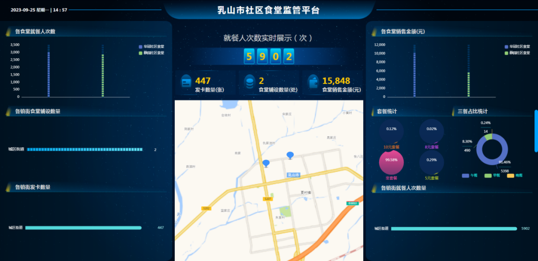 一体化食堂监管。通过一个监管平台统一集中管理,为各分支食堂开设权限,实现一卡通、一脸通,通过刷卡或刷脸即可就餐、跨店消费、收银,并可分区域统计就餐人数。同时,通过后台的视频监控画面,能够及时了解各食堂现场就餐情况,确保出现就餐纠纷有据可查。