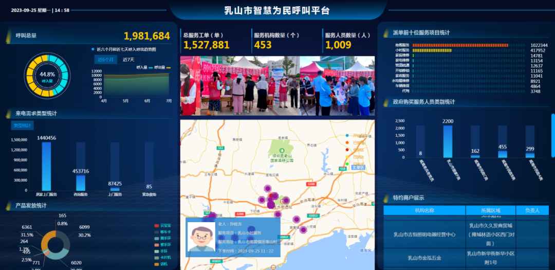 为积极应对人口老龄化,适应社会养老需求,让老年人生活更加自主、健康、有尊严,乳山市依托“6012349”居家养老服务中心,积极探索物联网、大数据、云计算、人工智能等新技术在养老领域的应用,全面整合全市养老服务资源,高标准打造乳山市智慧养老服务综合监管平台,通过数据共享、信息对接、集中展示,实现养老服务信息数据化、补贴精准化、监管智能化、供需对接智慧化。