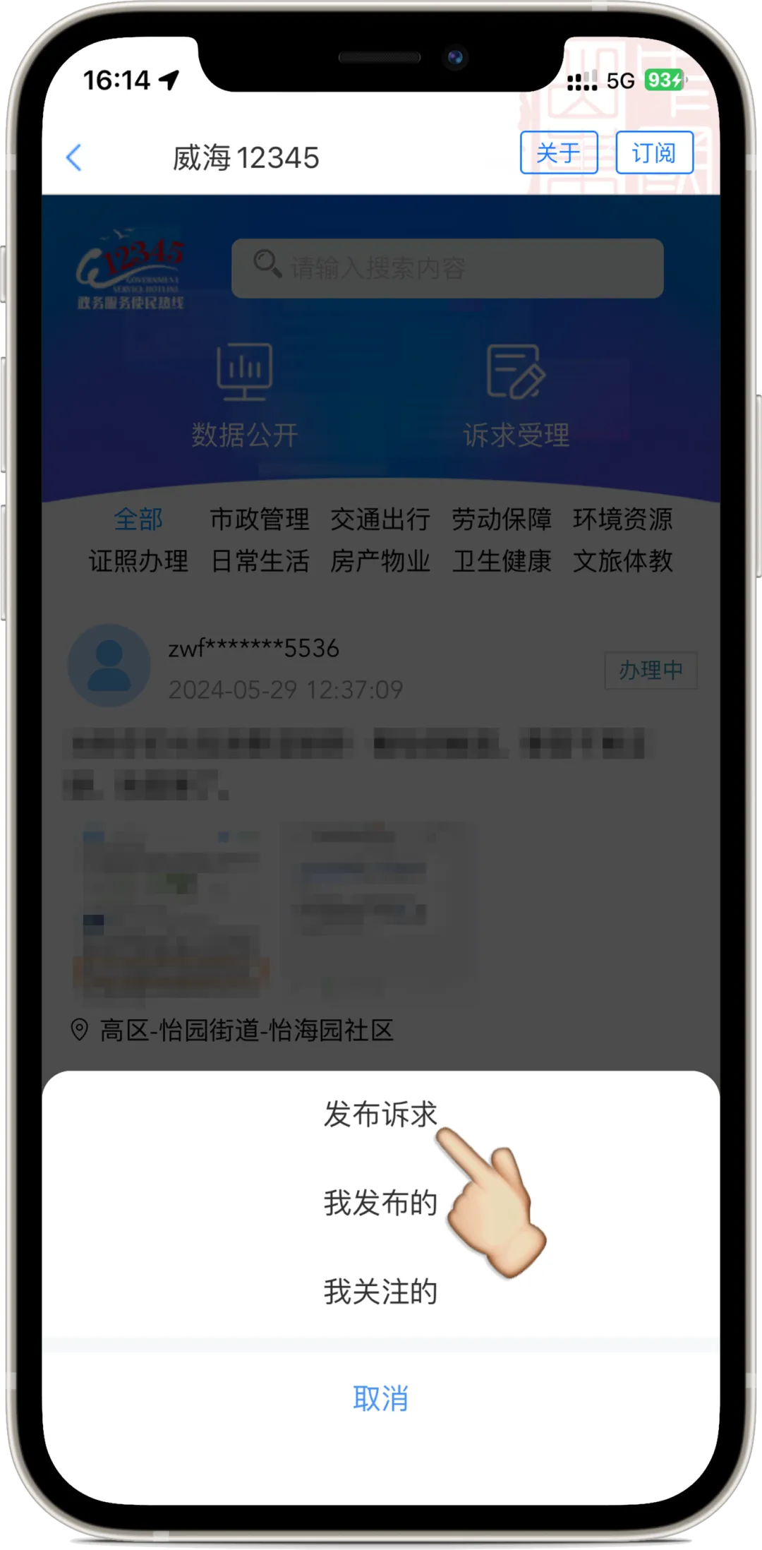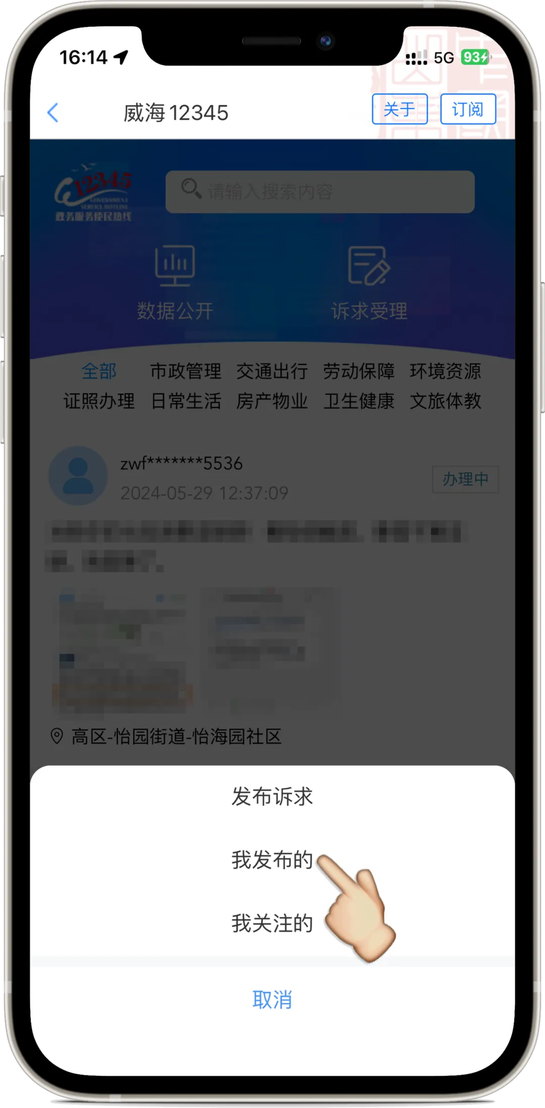 4.发布完成的诉求可以在“诉求受理”-“我发布的”进行查看。