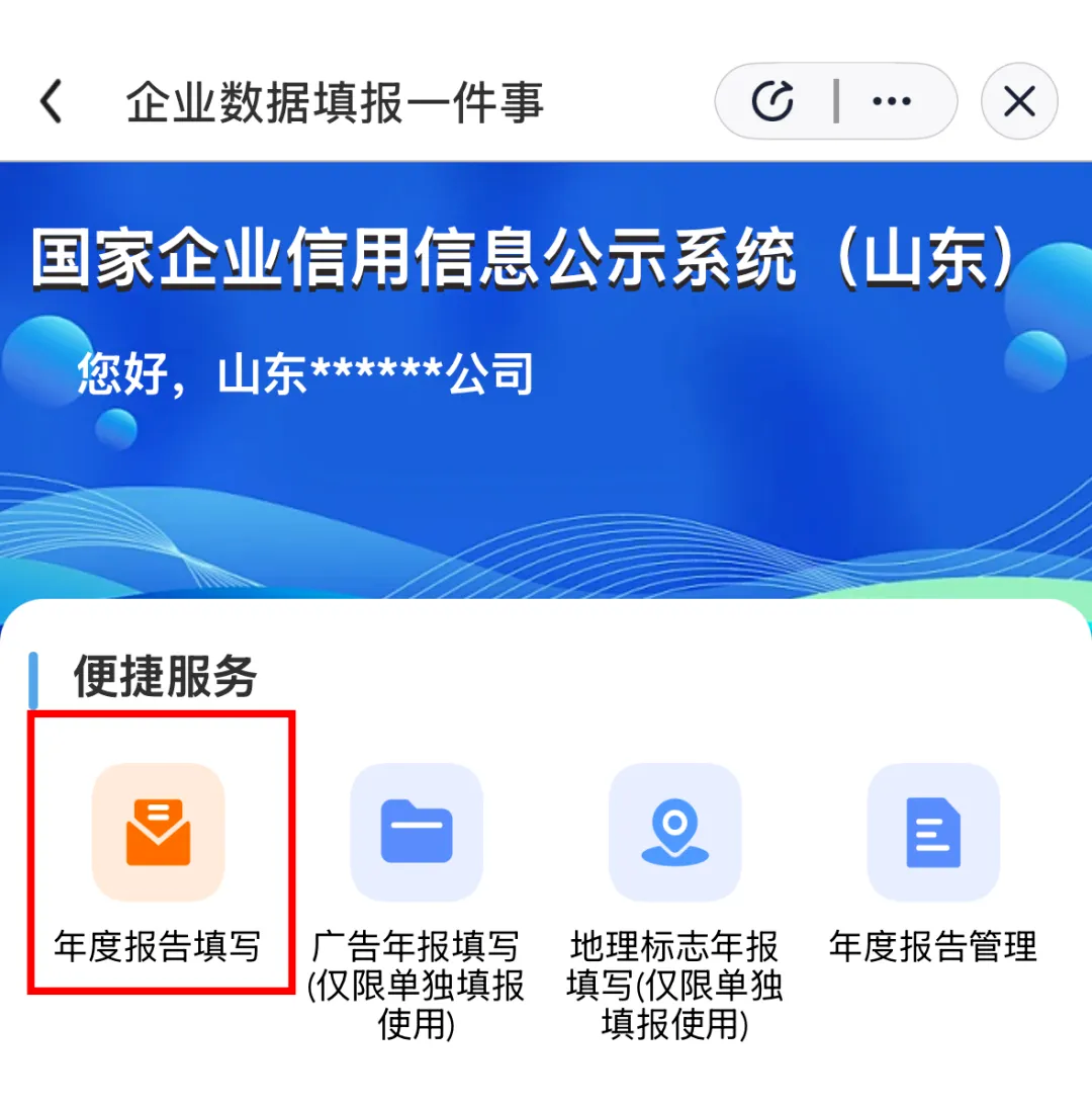 选择“年度报告填写”,根据页面提示完成年报填写。