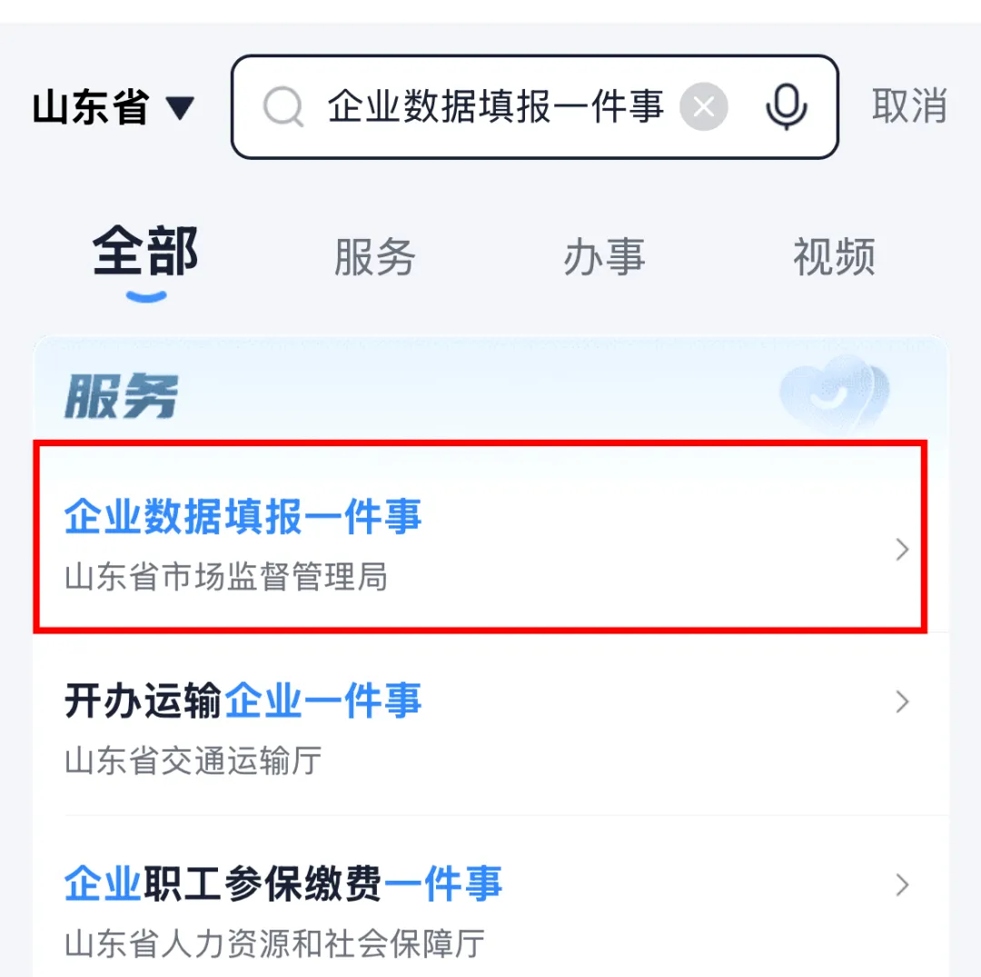 首页搜索“企业数据填报一件事”,进入服务;